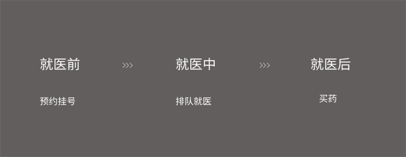 舉個例子,當我們分析整個看病就醫(yī)的流程,就可以將整個場景分為“前中后”三個階段,如下圖: