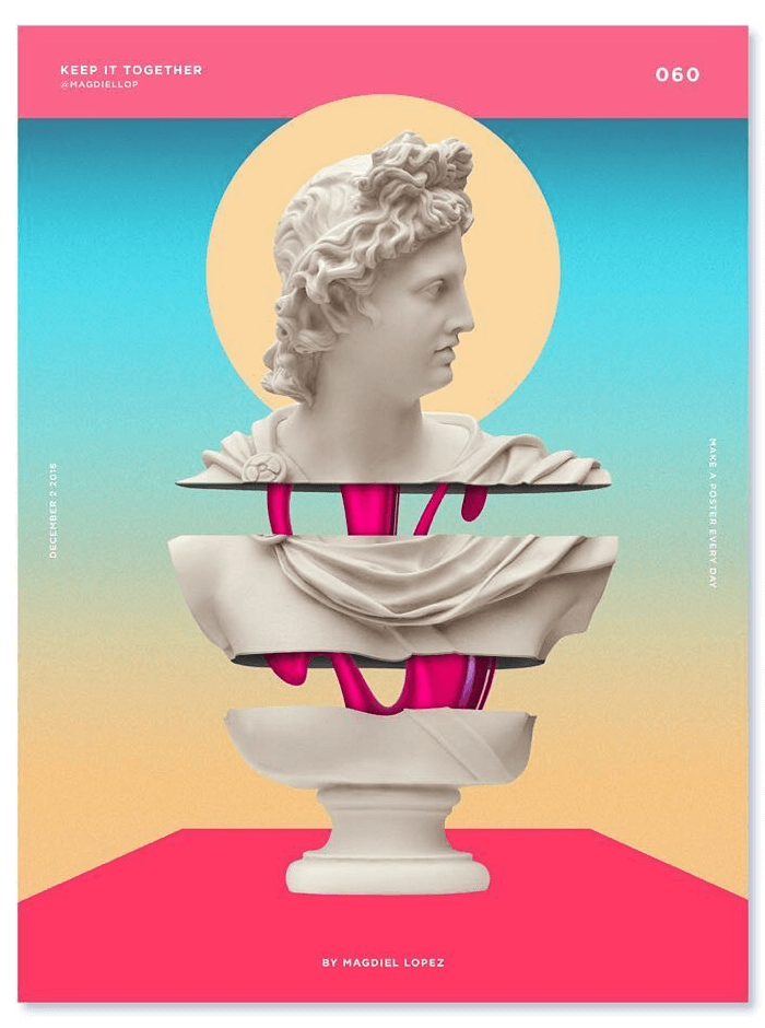 [設(shè)計(jì)大神-005] 蒸汽波風(fēng)格和故障藝術(shù)的碰撞,很棒