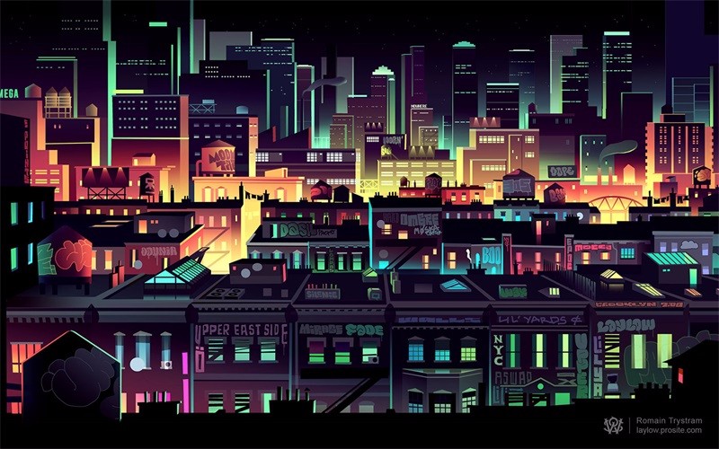 Romain是來自摩洛哥的一位插圖畫家,是一位熱愛城建筑的插圖設(shè)計(jì)師。他喜歡將每個(gè)城市描繪的炫彩多姿,從他的作品中可以看得出他使用漸變色彩大膽前衛(wèi)。而且已經(jīng)形成他的專屬設(shè)計(jì)風(fēng)格,在Behance里面很受歡迎。他的作品創(chuàng)作靈感大多來源于城市建筑,特別在夜晚的場景表現(xiàn)得非常出色。