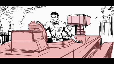 我的工作是把Sam說(shuō)的這一場(chǎng)動(dòng)作戲大概的一個(gè)走向,用我的分鏡頭畫(huà)面一個(gè)一個(gè)表現(xiàn)出來(lái)。