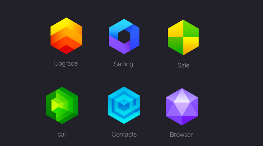 這套圖標(biāo)得風(fēng)格特點(diǎn)就是和六邊形形進(jìn)行結(jié)合。