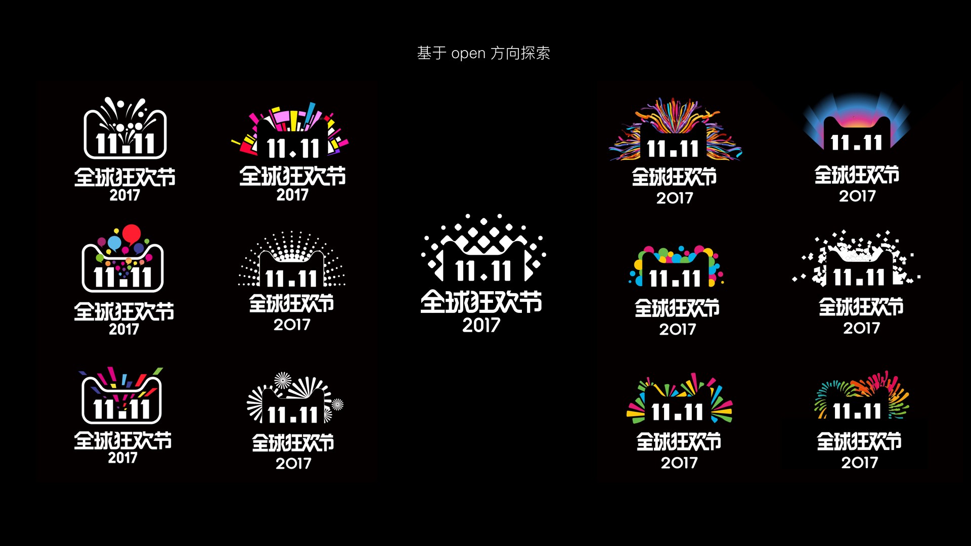 當(dāng)設(shè)計師接手這個任務(wù)的時候,就意識到這項挑戰(zhàn)的艱巨。歷屆雙十一所展現(xiàn)出來的設(shè)計水準(zhǔn)之高,意味著今年雙十一品牌設(shè)計的難度之大。今天展現(xiàn)出來的雙十一品牌,絕不僅僅只是設(shè)計一個logo(當(dāng)然,有經(jīng)驗的設(shè)計師都知道,要設(shè)計一個打通所有關(guān)節(jié),上下貫徹的logo,本來就很不簡單)而是既要體現(xiàn)業(yè)務(wù)策略,又能夠有效、有趣的完成與消費者之間的溝通。在這之中,logo是所有品牌策略和創(chuàng)意的匯聚提煉,又是整個雙十一品牌延展設(shè)計的原點,綱舉才能目張。要了解雙十一品牌的始末,我們的故事就得從logo說起。