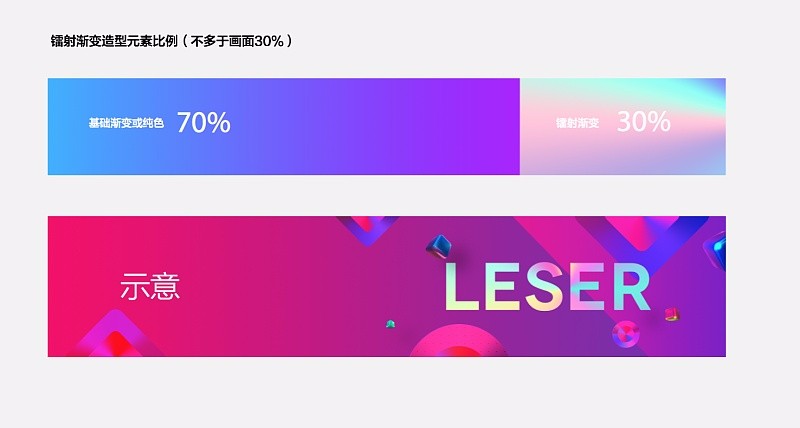 確定了視覺風(fēng)格的主思路之后,就是反復(fù)的嘗試。因為設(shè)計師發(fā)現(xiàn)一個問題,鐳射這個元素很炫酷,但是也很難駕馭,所以要保持克制,要high也要有原則。就有了不超過30%的畫面占比這個視覺原則。而在應(yīng)用上,我們可以感受到這種撲面而來的歡樂,這就是節(jié)日該有的樣子。