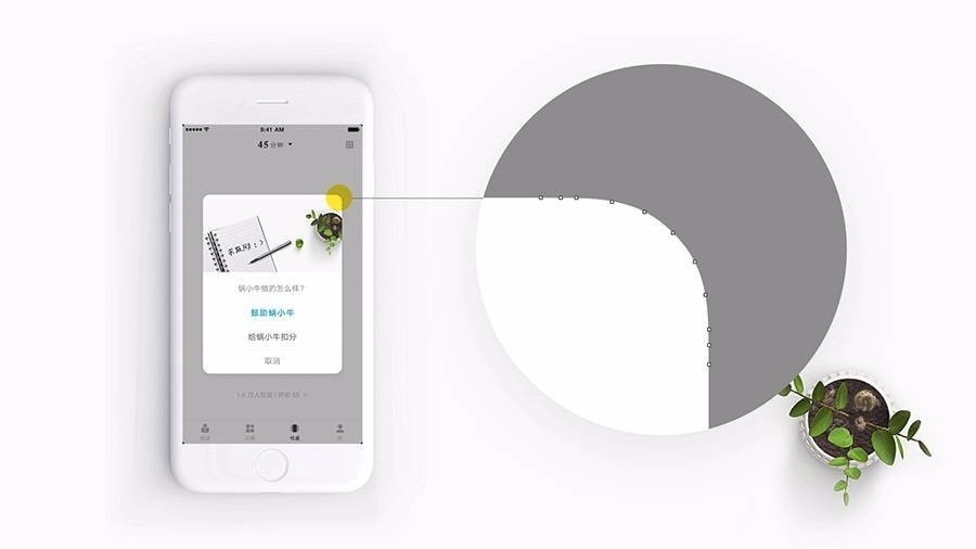 在我們平時做設(shè)計的時候,當圓角設(shè)置稍微大一些的時候,總是會發(fā)現(xiàn)圓角并不是那么完美,直線和曲線的過渡很生硬,通過曲率梳狀圖,我們可以看到左圖常規(guī)的圓角曲率的過渡是突變到半徑值,而右圖圓角曲率則是平滑過渡,右圖用的就是連續(xù)曲率的圓角,雖然這是一個難以被發(fā)現(xiàn)的細節(jié),在蝸牛的設(shè)計中我們還是希望盡量減少這種生硬的銜接帶來的切割感,提供更加友好和順滑的體驗。