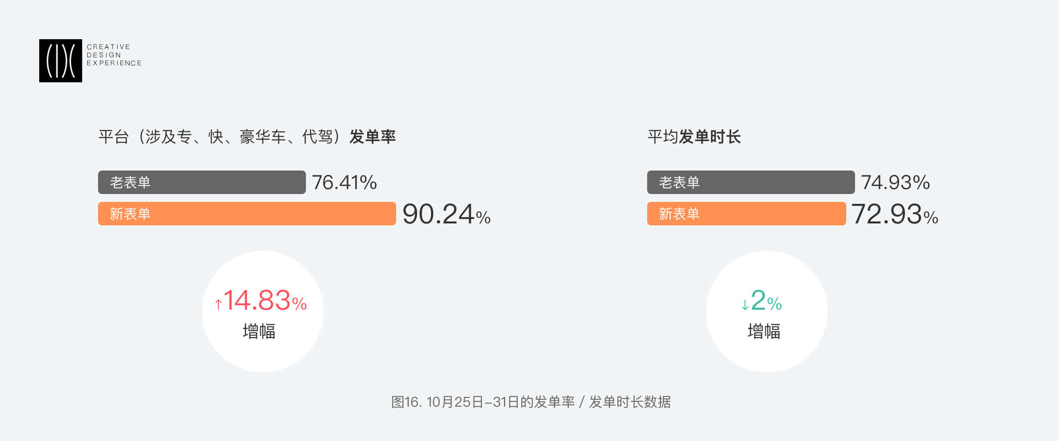 - 新表單較老表單,發(fā)單量增加,發(fā)單率提升14.83%;