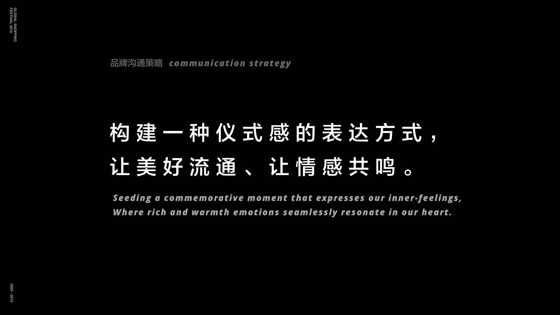 從2009到2018,歷經(jīng)十年的演變,天貓雙11早已不是當(dāng)年的規(guī)模,它所服務(wù)的用戶遍布全球,這里面內(nèi)涵和外延都發(fā)生了巨大的改變。這十年當(dāng)中,天貓雙11從主打“五折”到“不止五折”再在到“祝你雙十一快樂(lè)”,溝通的重點(diǎn)早已不是大促這么簡(jiǎn)單,而是開(kāi)始溝通節(jié)日心智,引領(lǐng)全球消費(fèi)者通過(guò)雙11這個(gè)節(jié)日,發(fā)現(xiàn)快樂(lè),開(kāi)啟理想生活。面向未來(lái),我們還需要把節(jié)日演變成一種文化,文化就需要有內(nèi)涵,我們?nèi)绾钨x予雙十一更深層的文化內(nèi)涵,讓節(jié)日心智在消費(fèi)者腦海中沉淀升華,是我們需要溝通的重點(diǎn)。