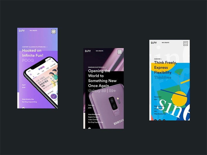 混合了大膽的配色與強(qiáng)烈的漸變的幾何流體、非對(duì)稱形狀是2019年必不可少的網(wǎng)頁設(shè)計(jì)趨勢(shì)。
