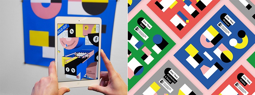 Even though it is printed on a paper, this poster allows people to have interactive experience using 3D AR technology. The poster only contains simple geometric graphics and minimal information, but when it is seen through mobile, people can get more information and see three dimensional shapes.