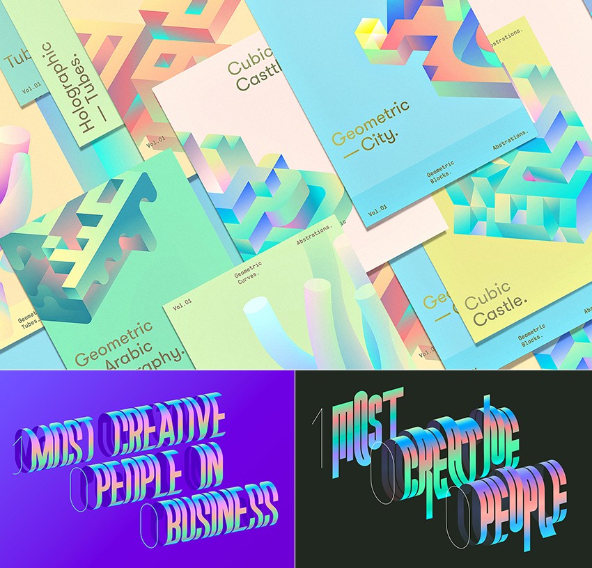 3D trend has been so popular that graphic trends can not be discussed without it. Nowadays there are many attempts to show more vivid and fresh impression by applying sophisticated texture to 3D images. People are defining a new realism by adding a realistic texture to the geometric 3D forms which creates graphics that can not exist in reality.
