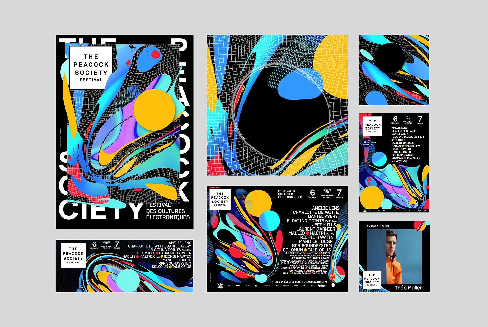 將明亮多彩的漸變色應(yīng)用于有機形態(tài),這些圖像表達了巴黎電子音樂節(jié)的特征。