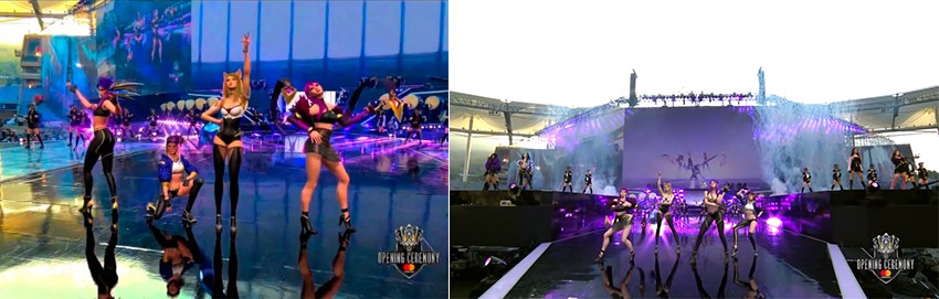 The real singers who sang POP/Stars on the opening stage of the League of Legends 2018 and the characters of K/DA had stage together using AR technology. The characters were tracked in real time and gave the effect of performing on the actual stage.