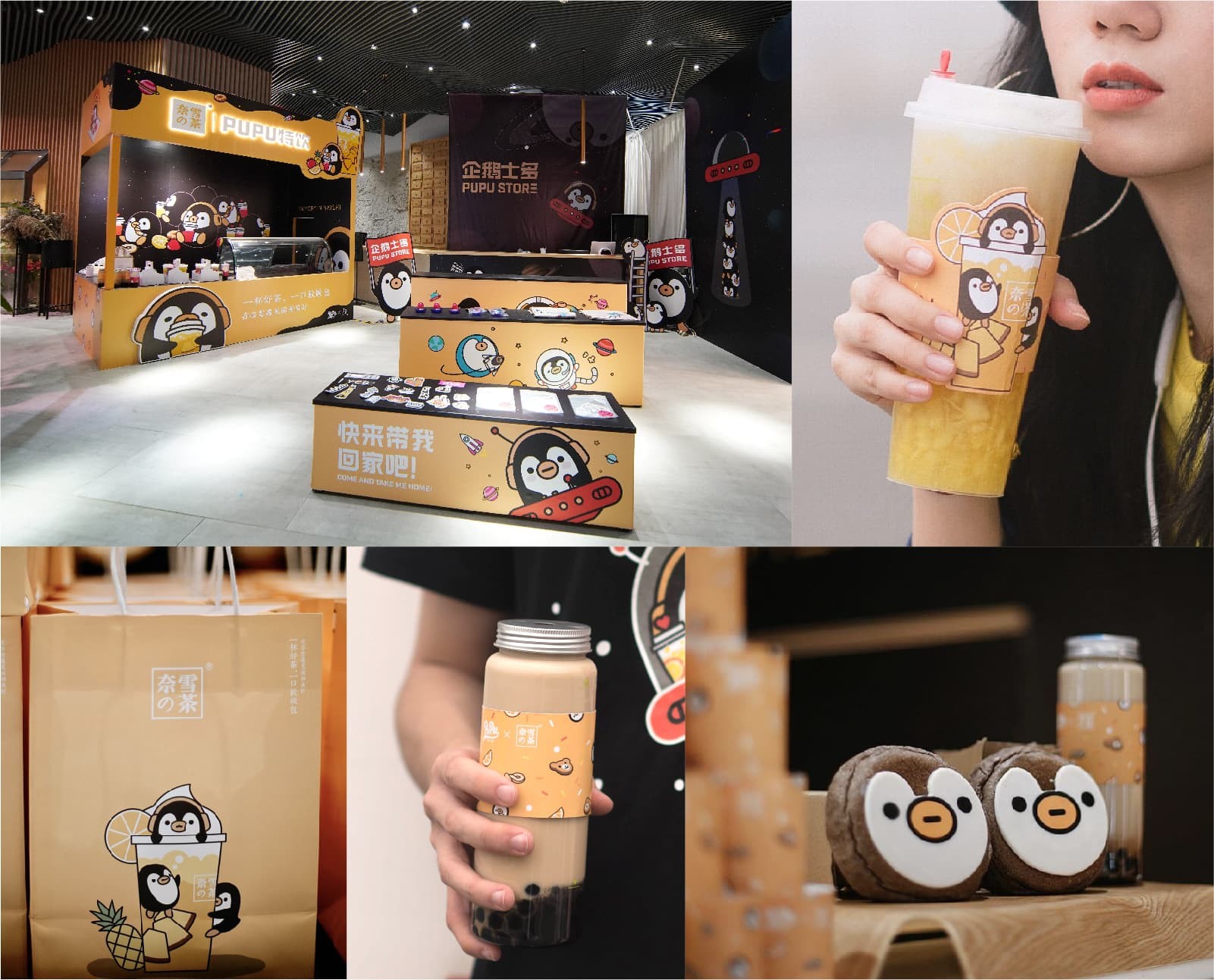 騰訊ISUX設計的新角色PUPU與中國流行的奶茶品牌奈雪的合作,它們在企鵝奇幻之旅的展覽中被一同推出,并且正在中國深圳的奈雪店出售。