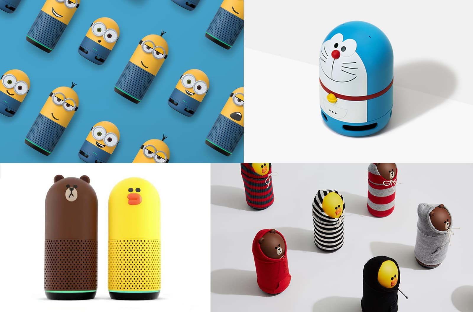 Clova Friends is an AI speaker brand made by LINE Friends' mother company, Naver. Using the LINE Friends character Brown and Sally, they designed a cute and friendly artificial intelligence speaker. A lot of cute characters are tend to be applied to AI speakers since characters can make people feel more friendly to the device and have emotional access to it. Recently, they have designed some special editions through collaboration with Doraemon and Minions which were very popular.