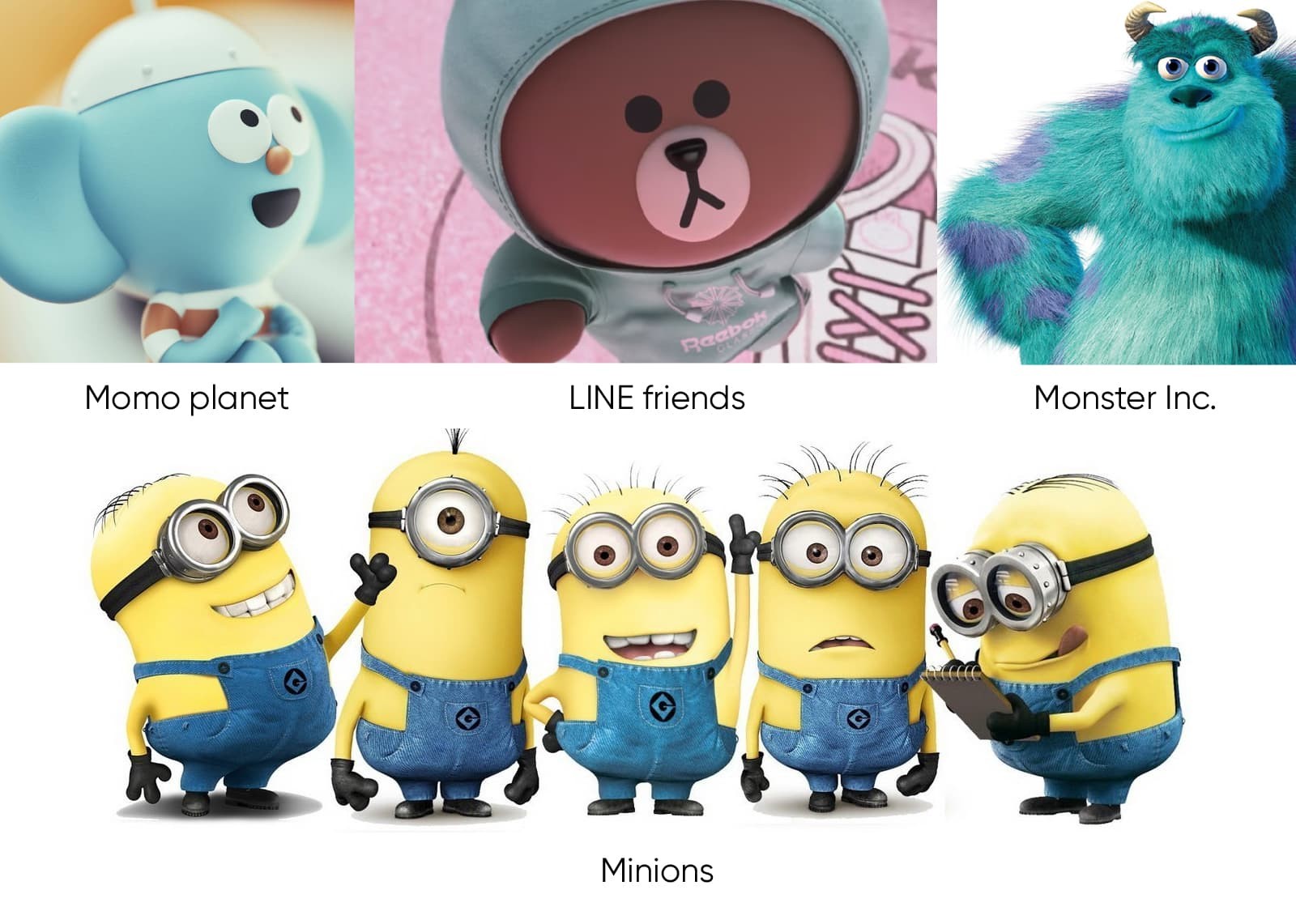 Traditionally, characters born in comic books, TVs, and games have been very popular for a long time. But recently, online sticker characters that help express emotions on messengers are becoming more popular as the use of messenger apps such as Kakao and LINE increases. In addition, as the character industry develops, artist-based companies create character brands with unique stories which a lot of brands wants to collaborations with. China's Molly, Korea's Sticky Monster Lab and Super Fiction are the representative examples.