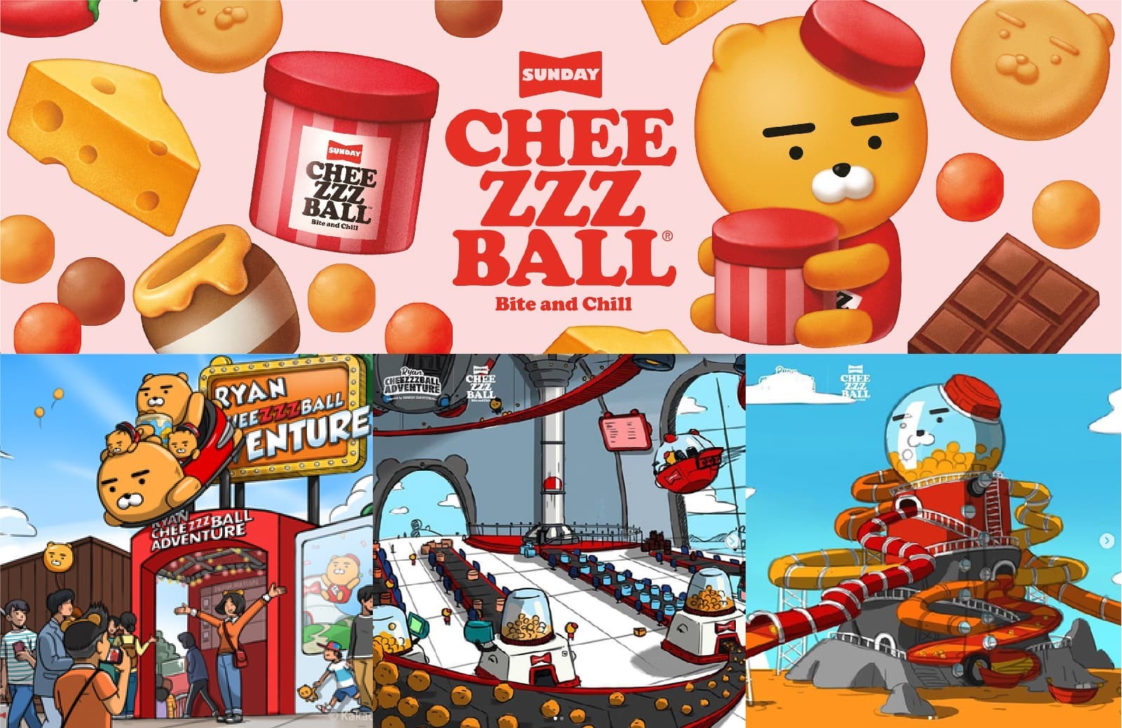 Kakao Friends launched 'Sunday cheezzzball', a unique snack brand which used Ryan as the main model. Started with a background story that Ryan loves cheese ball, Kakao Friends expanded its distribution network to offline with their own snack brand 'Sunday Cheese Ball'. They also designed a pop-up store with the concept of ‘A healing snack for people who feel somewhat lonely in the busy daily life’.
