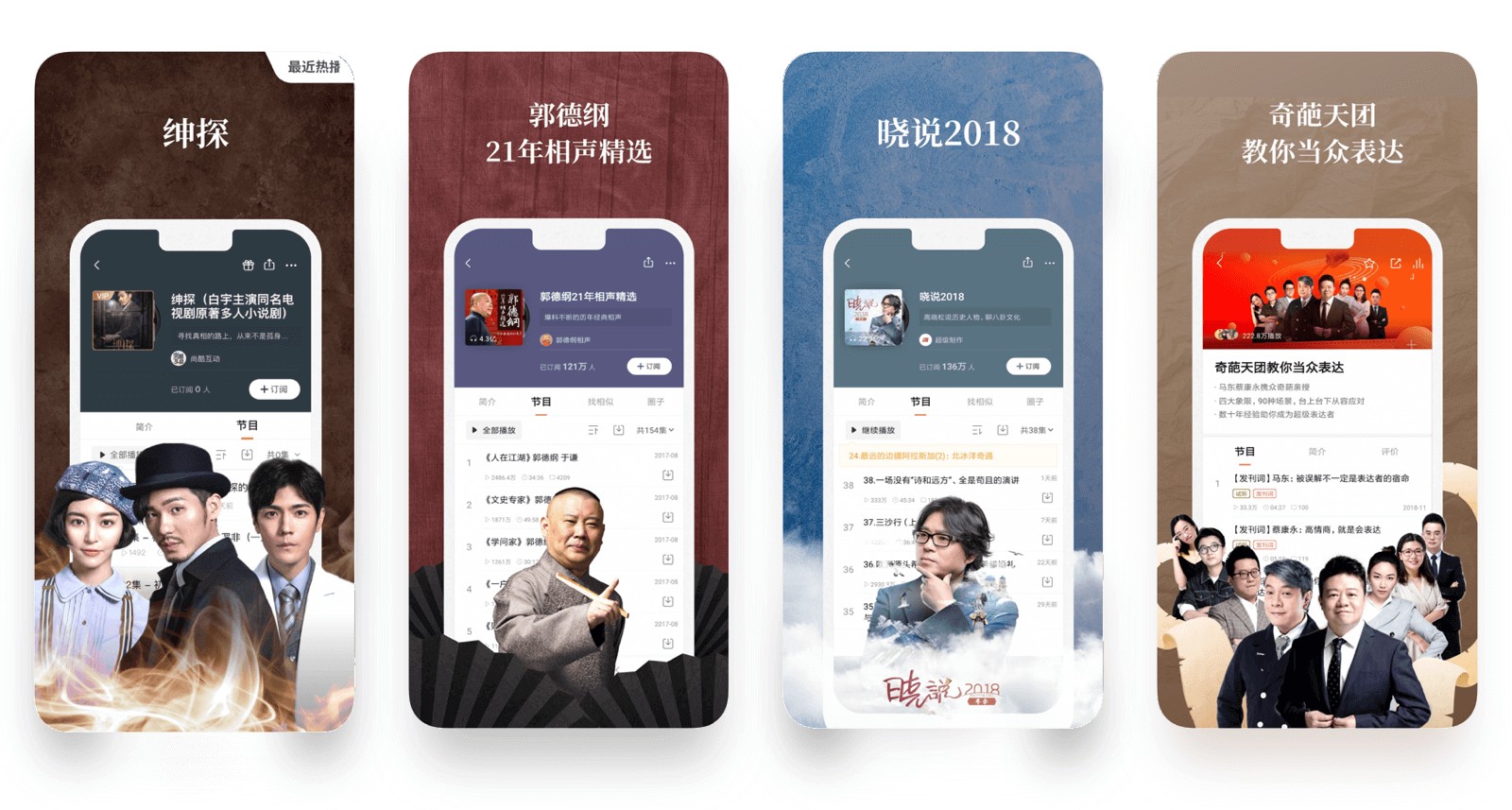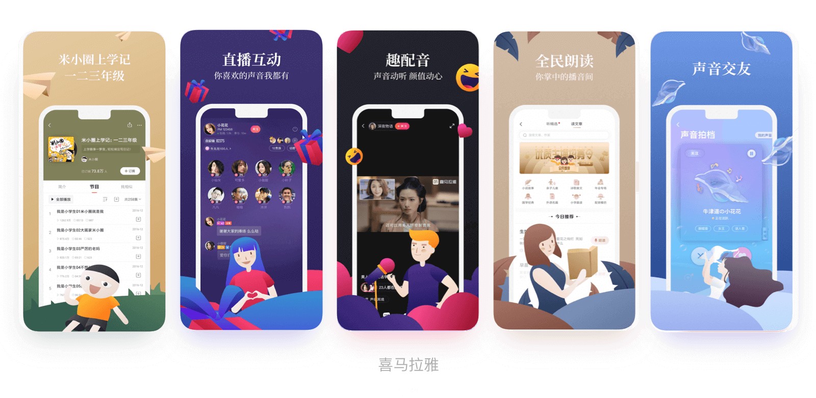 喜馬拉雅利用人物元素結(jié)合不同背景顏色及材質(zhì)突出主題內(nèi)容,以及對(duì)不同定位的內(nèi)容采取的不同的設(shè)計(jì)風(fēng)格,讓設(shè)計(jì)風(fēng)格更加符合內(nèi)容主題更加契合。