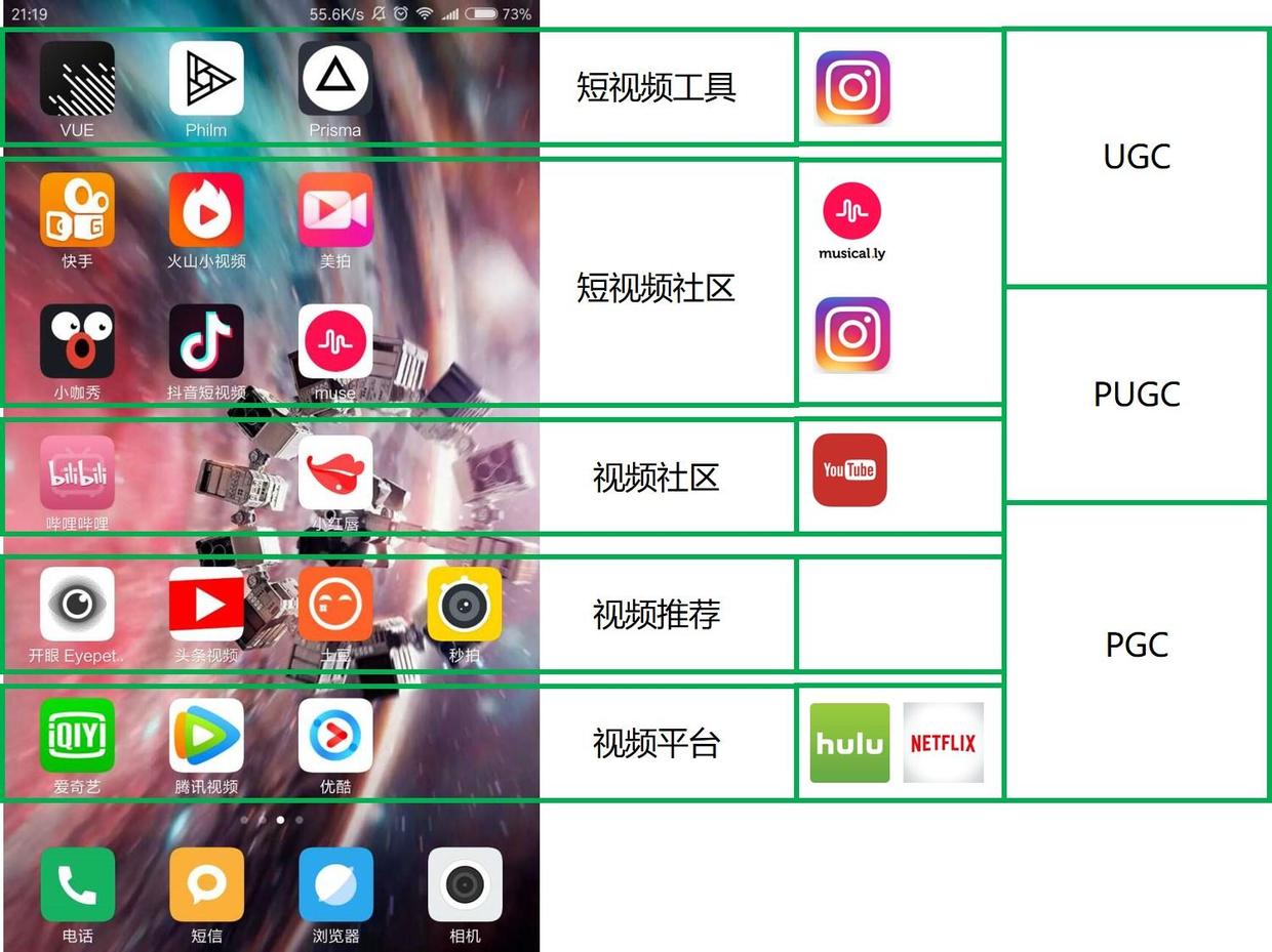 首先,我把現(xiàn)有的視頻行業(yè)刨除直播(直播還是找個時間單獨講吧),然后把行業(yè)粗略的分成五個子類: