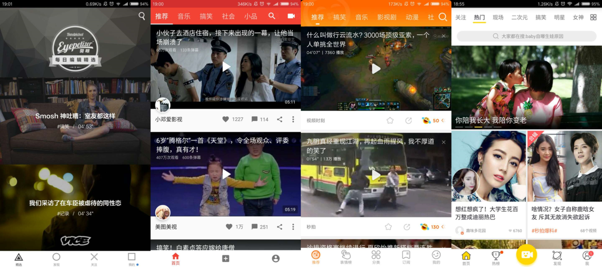 嗯,上邊三個分別是快手、火山、美拍。我不說,你們自己區(qū)分吧。
