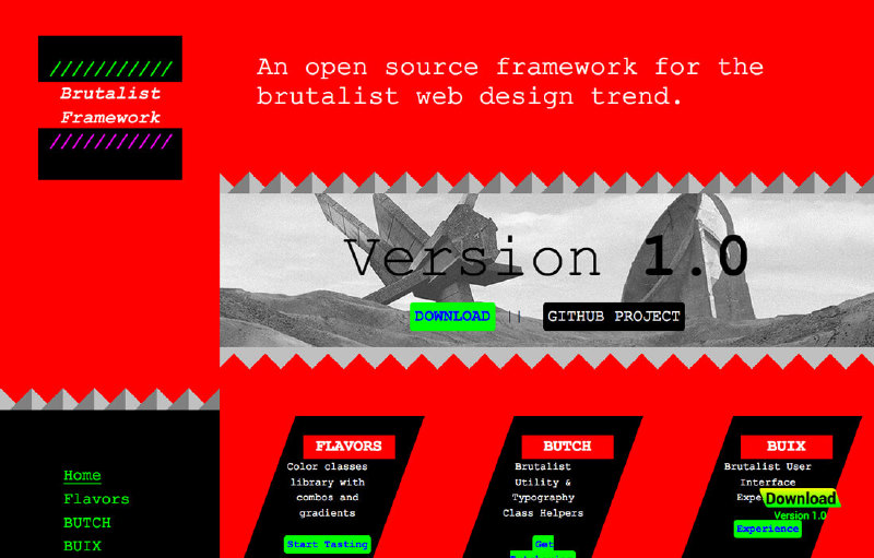 下面的幾個案例就是典型的粗野主義設(shè)計風(fēng)格的網(wǎng)頁,它們能讓你對這種風(fēng)格有一個相對清晰的認(rèn)知: