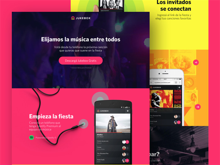 漸變用色,前面說到了同色相漸變、鄰近色相漸變,而多色相漸變在視覺上的表現(xiàn)力會更強(qiáng)一些,這類配色在Web 端運(yùn)用居多。