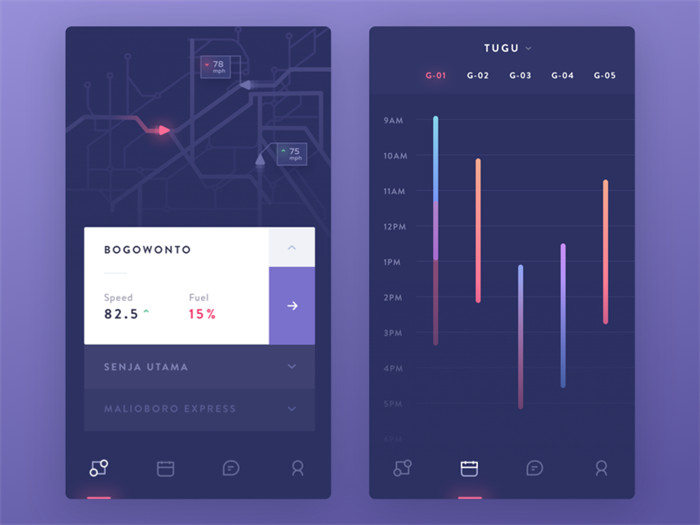 這類用色,在UI中用的也居多。使用鄰近色漸變,會給人很微妙的感覺。一般采用鄰近色漸變,會以一種色彩為主,其他色彩為輔,這樣看起來,主次比較分明。