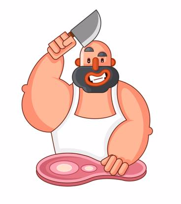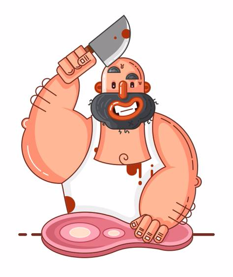 我們來看看這些屠夫們有什么共同的構(gòu)成點:彪悍的大叔+大刀+圍裙。