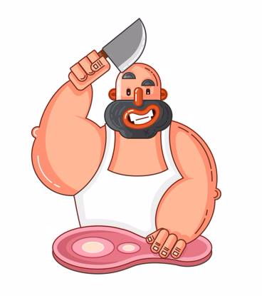 對我而言,在我腦中出現(xiàn)的是一個穿著圍裙正在賣力剁肉的屠夫大叔。